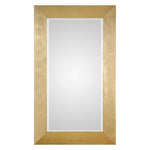 This Solid Pine Frame Features A Sleek Design Finished In A Hand Applied Gold Leaf. Mirror Features A Generous 1 1/4" Bevel And May Be Hung Horizontal Or Vertical.