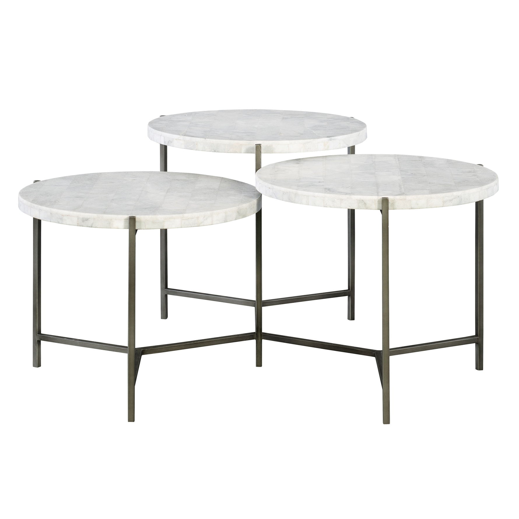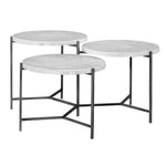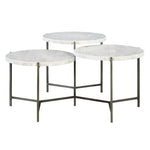 Clean Contemporary Styling Is Featured In This Tiered Coffee Table Design With White Marble Tops, On A Forged Iron Base In A Gunmetal Silver Finish.