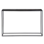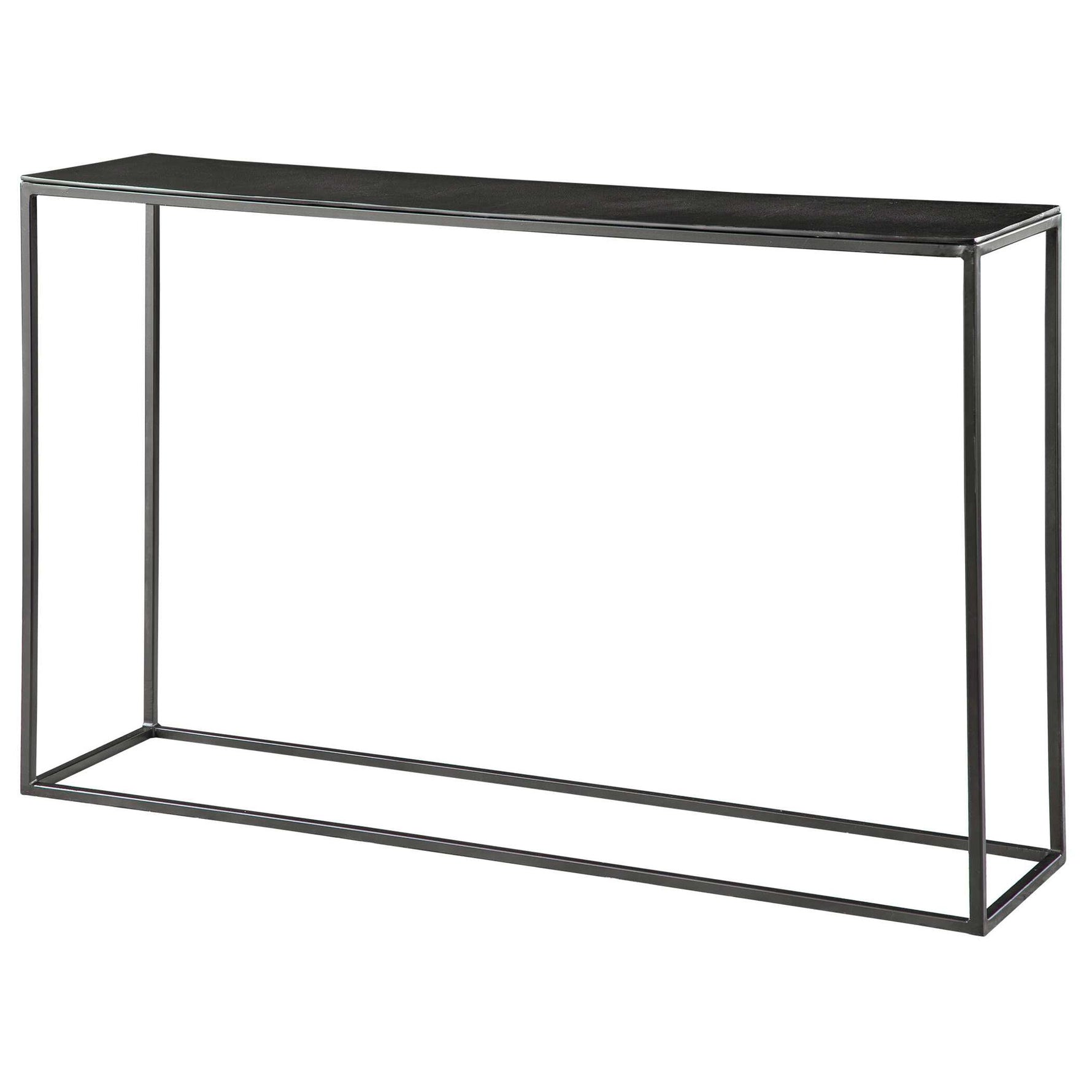 - Simplistic Industrial Style Console Table, Constructed In An Aged Black Iron Featuring A Cast Textured Aluminum Slab Top Finished In A Plated Antique Bronze.