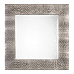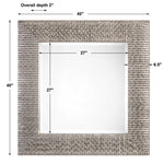 Frame Is Adorned With Rows Of Raised, Staggered Beading Details, All Of Which Are Finished In Distressed Metallic Silver Leaf With Black Undertones And A Light Gray Wash. Mirror Features A Generous 1 1/4" Bevel.