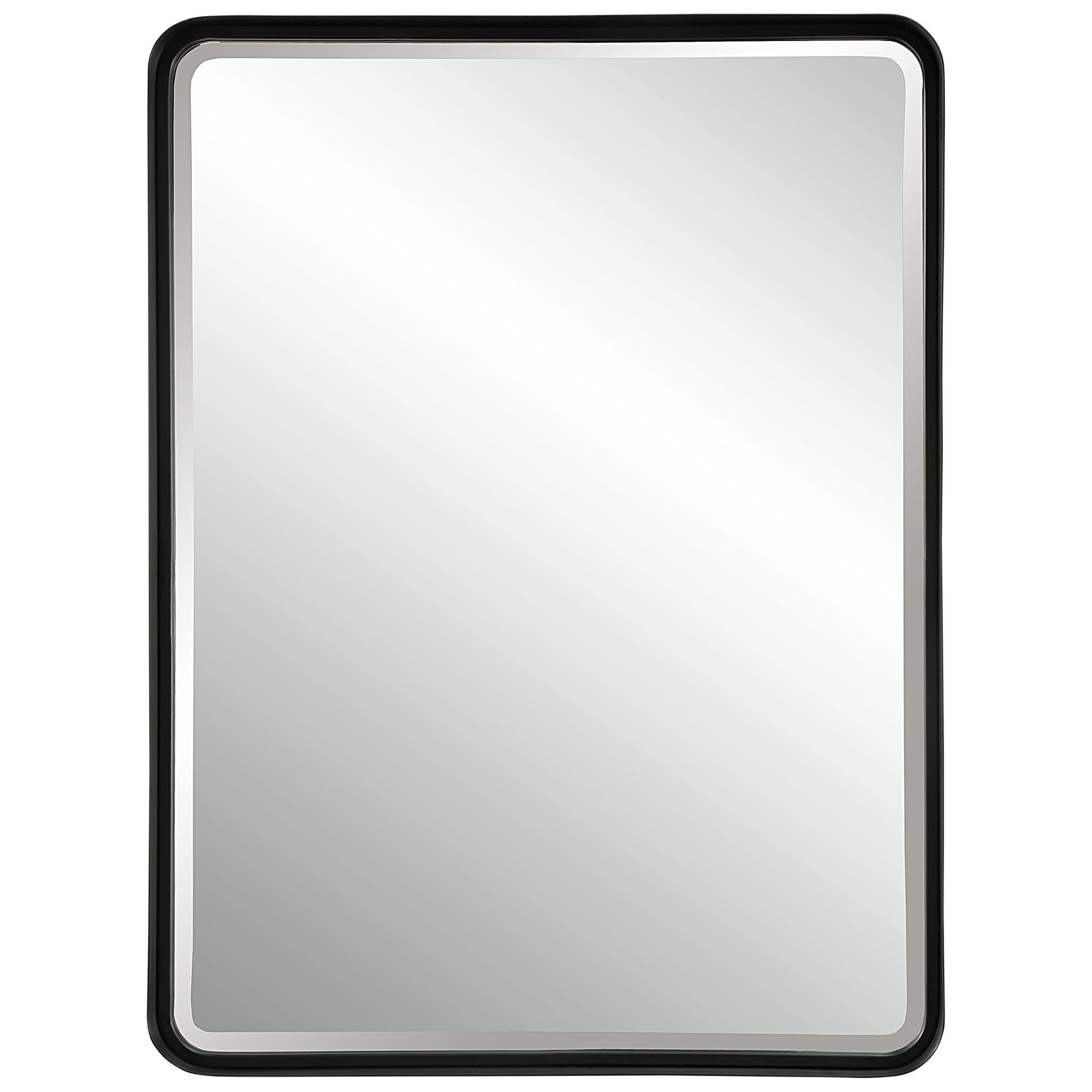 - This Mirror Features A Deep Metal Band Surrounding An Offset Inner Ledge Finished In A Sleek Satin Black. Mirror Has A Generous 1 1/4" Bevel And May Be Hung Horizontal Or Vertical.