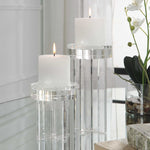 Crystal - Pillar Candleholders (Set of 2) - Silver