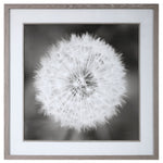 This Black And White Dandelion Framed Print Is A Great Neutral Piece Of Artwork That Adds Interest To Any Space. The Print Is Accented By A Driftwood Gray Pine Wood Frame With A Matching Fillet And A Large White Mat. Artwork By Majchrowicz.