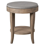 - A Casual Farmhouse Inspired Side Table With Birch Wood Veneer, Finished In A Natural Brown Glaze With A Solid Poured Concrete Surface Top.