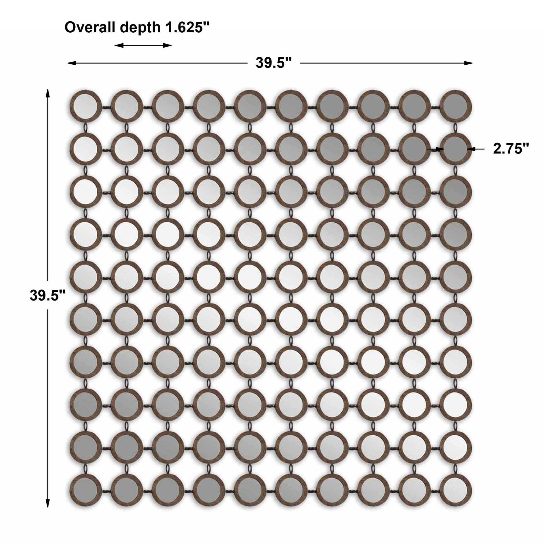 Numerous, Small Round Mirrors Are Joined By Hand Forged Metal To Create This Mirror. Finish Is Lightly Antiqued Silver Champagne Leaf.