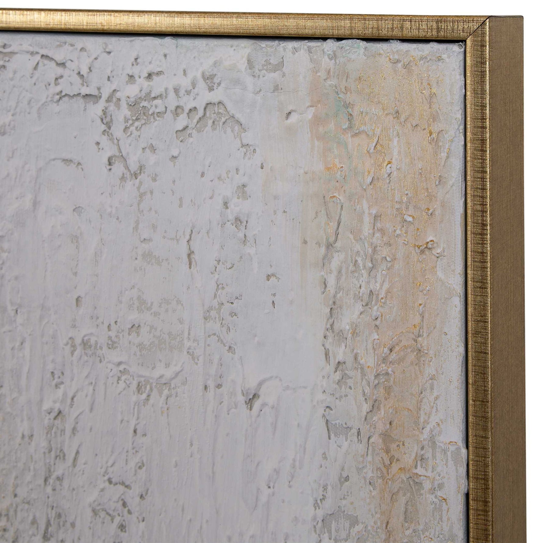 • Hand Painting, Abstract, Texture, Gold Gallery Frame, Gold, White, Black, Cobalt Blue, Aqua Tones, Gray