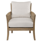 High Supportive Back And Curvy Flair Arms Make A Grand Style Statement In A Lightly Glazed And Bleached Sandstone Exposed Hardwood Finish With Cane Sides, Tailored In A Durable Yet Lush Off-white Fabric With Added Performance Treatment To Resist Soiling And Stains.