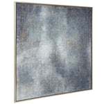 - Silver Gallery Frame, Denim Blue, Charcoal Gray, White, Abstract, Hand Painted Canvas