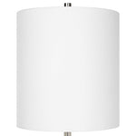 Sleek And Refined, This Contemporary Buffet Lamp Showcases A Streamlined Iron Base In Polished Nickel With Natural White Marble And Crystal Accents. Paired With A Hardback White Linen Fabric Drum Shade.