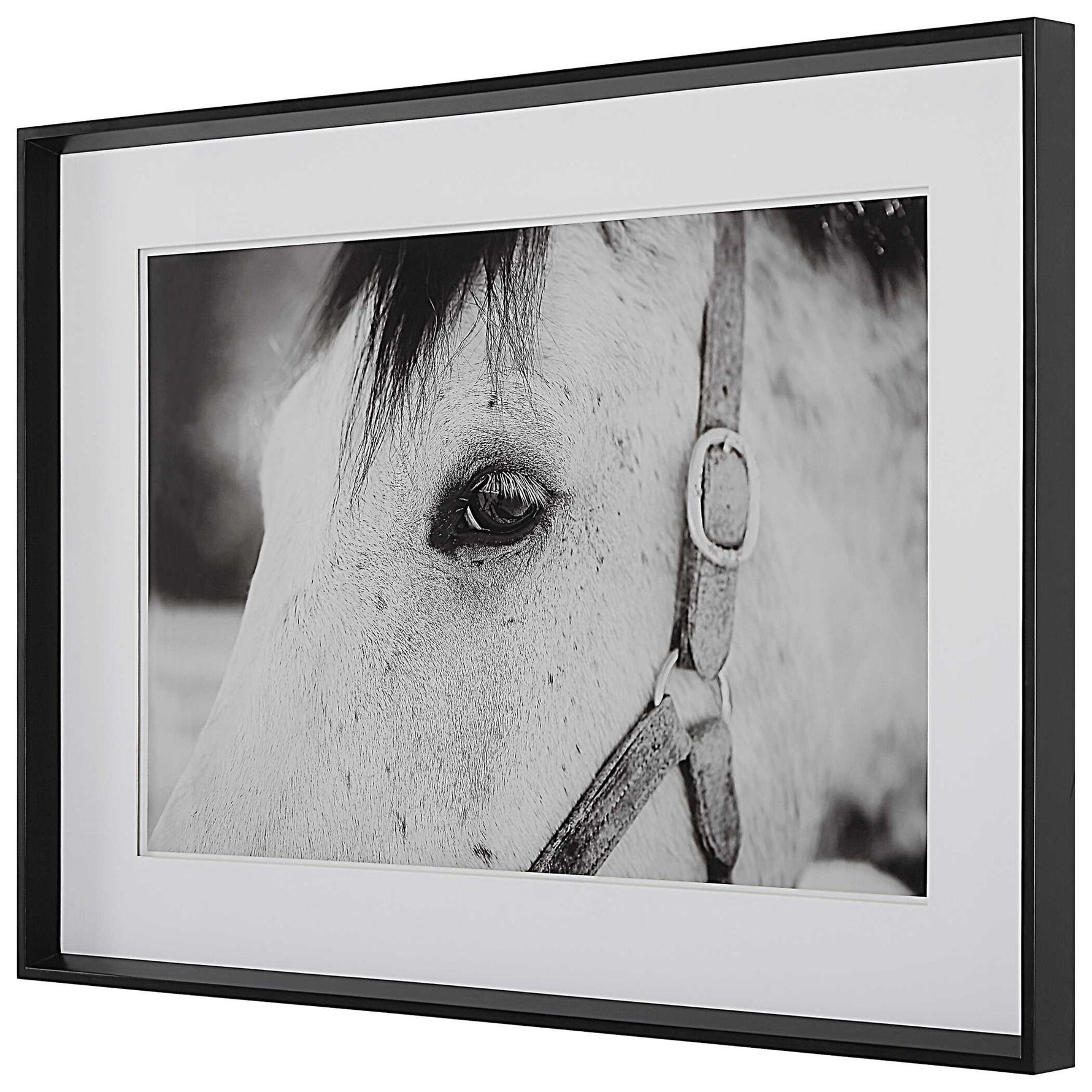 Ralph Waldo Emerson Once Said, "the Eyes Indicate The Antiquity Of The Soul." As One Part Of A Striking Equine Story, This Artwork Showcases An Exclusive Black And White Portrait With Layered White Matting Under Glass And A Simple Satin Black Frame.