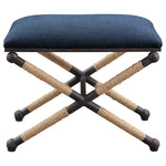• Rustic Iron Frame With A Nautical Touch, Wrapped In Natural Fiber Rope Accents. Cushioned Top Is A Cotton Blend In A Rich Textured Navy Blue.