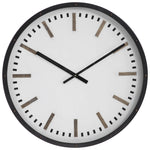 - Wall Clock Featuring A Dark Bronze Frame With Nail Head Accents. The White, Iron Face With Antique Brass And Black Accents Are Encased Under A Glass. Quartz Movement Ensures Accurate Timekeeping. Requires One "AA" Battery.