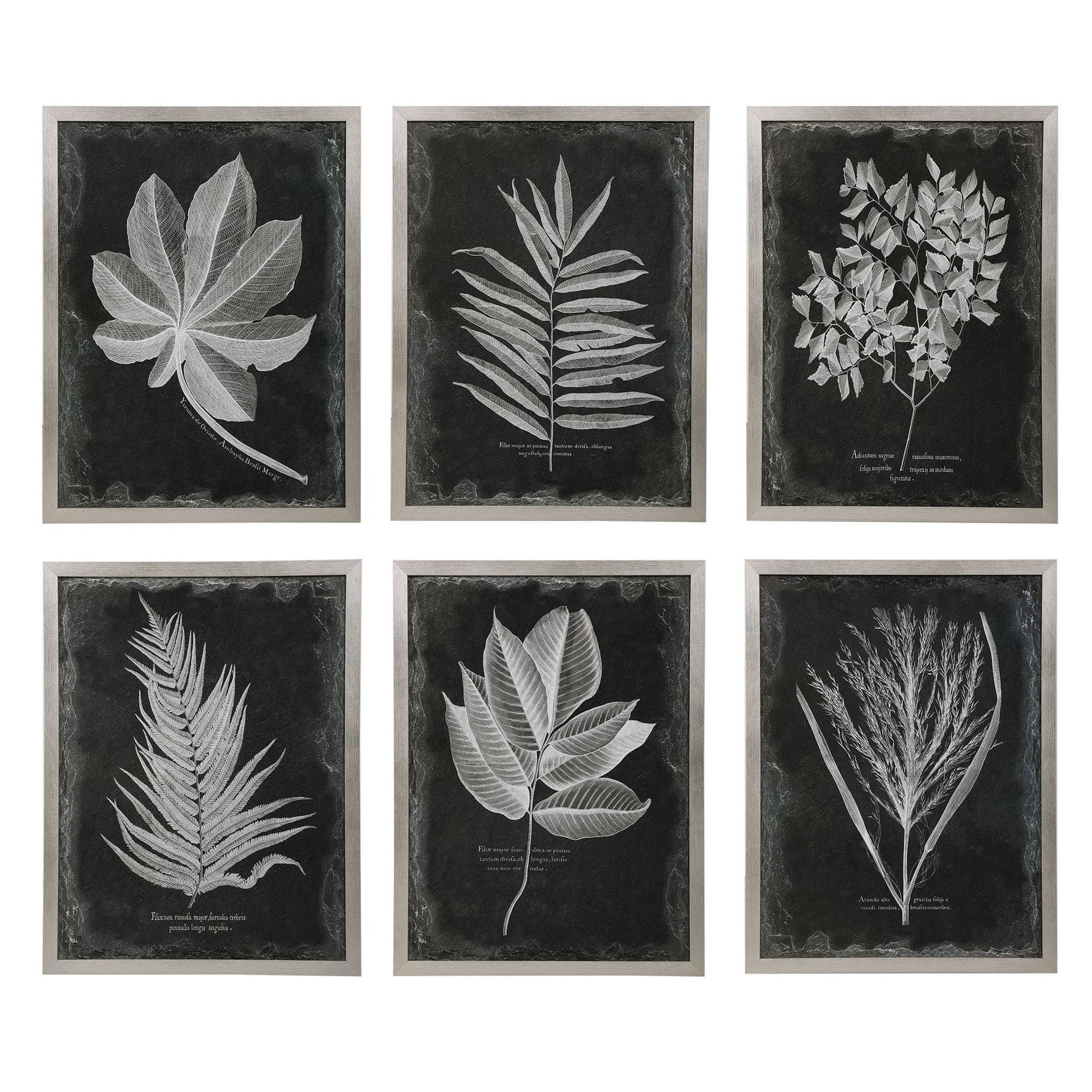 This Botanical Artwork Showcases Vintage Style With A Contemporary Edge. Each Striking Black And White Contrast Is Accented With A Petite, Champagne Silver Frame. Each Print Is Placed Under Protective Glass.
