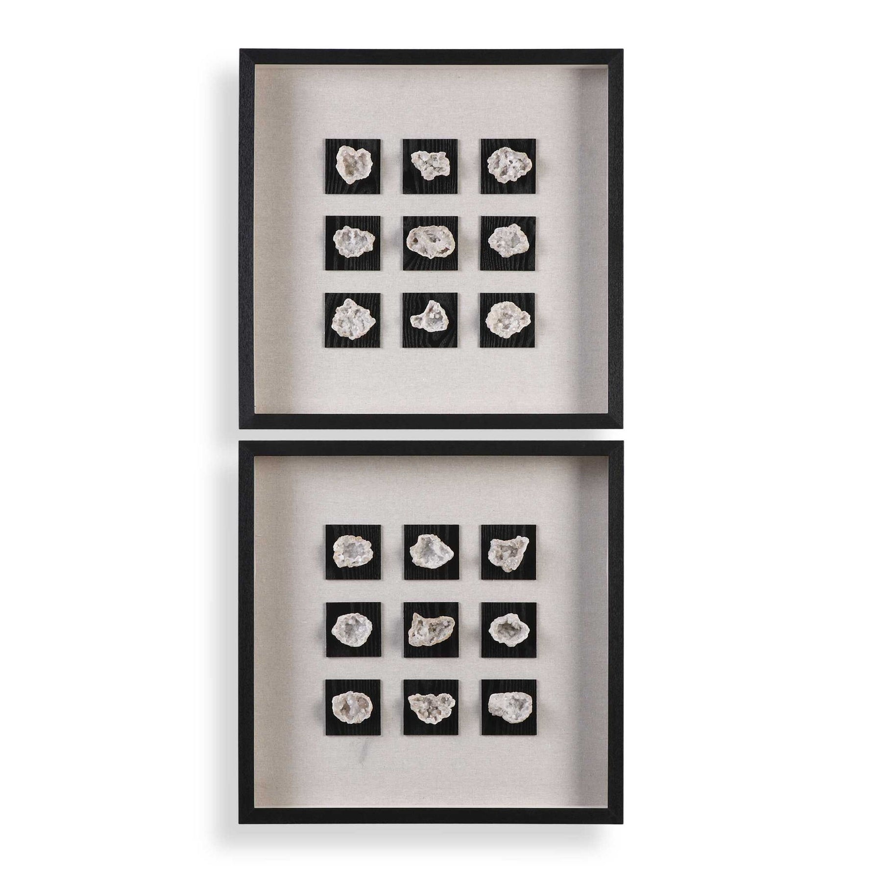 - Authentic Geodes In Natural Hues, Accented By Black Wood Grain Matting On Natural Linen, In A Black Fir Wood Shadow Box. Sizes And Shapes Of Geodes May Vary Slightly.