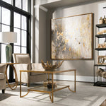 Sophisticated Glamour Exudes From This Hand Painted Abstract On Canvas. On Trend Shades Of Blush And Army Green Are Matched With Vivid Gold Leaf Accents. The Canvas Is Stretched And Attached To Wooden Stretching Bars Then Surrounded By A Heavily Distressed, Mottled Gold Leaf Gallery Frame. Due To The Handcrafted Nature Of This Artwork, Each Piece May Have Subtle Differences. This Piece May Be Hung Horizontal Or Vertical.