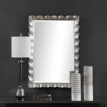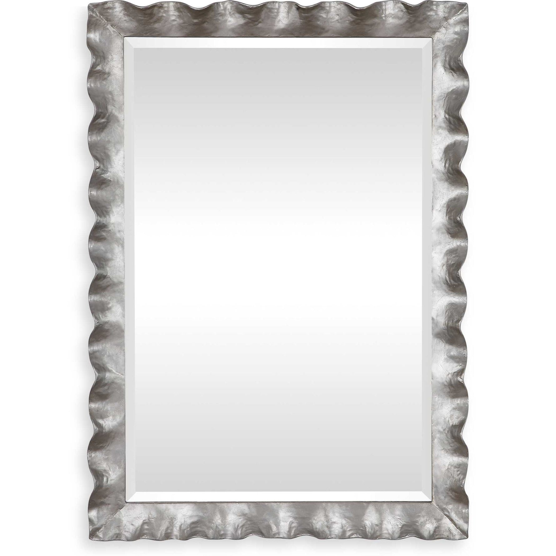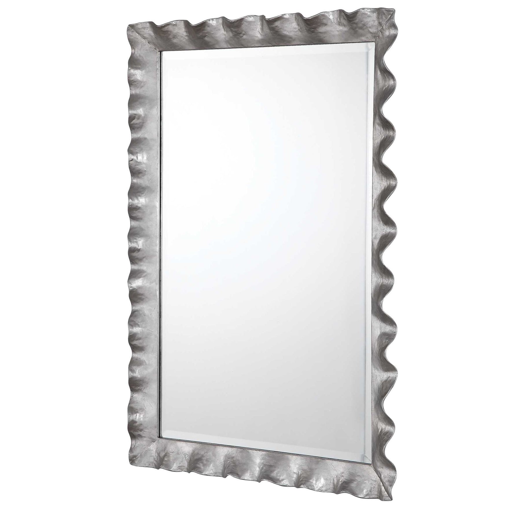 - This Mirror Features A Hand Forged Metal Frame Finished In Silver Leaf With An Organic, Scalloped Edge Design. A Generous 1" Bevel Is Added To This Piece, Which May Be Hung Horizontal Or Vertical.
