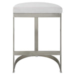 Simplistic But Sturdy, This Statement Counter Stool Features A Thick Hand Forged Iron Base Finished In Brushed Silver. Plush Seat Is Tailored In A White Linen Blend Performance Fabric.