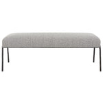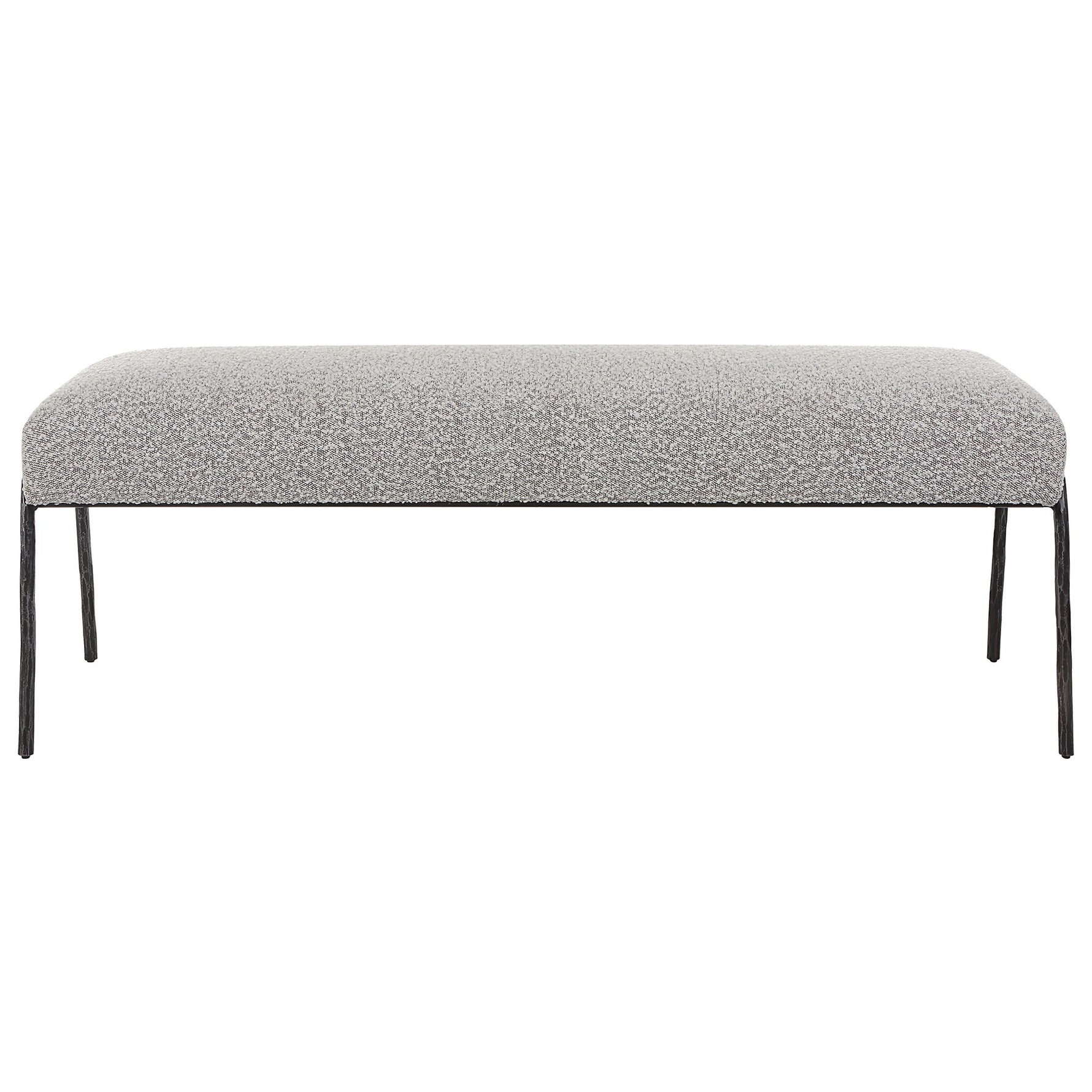 - Inspired By Scandinavian Designs, This Bench Showcases Elegant Curved Lines With A Chiseled Iron Frame In A Natural Aged Black Iron Finish. A Casual Ivory And Warm Gray Textured Boucle Fabric Accents This Modern Look.