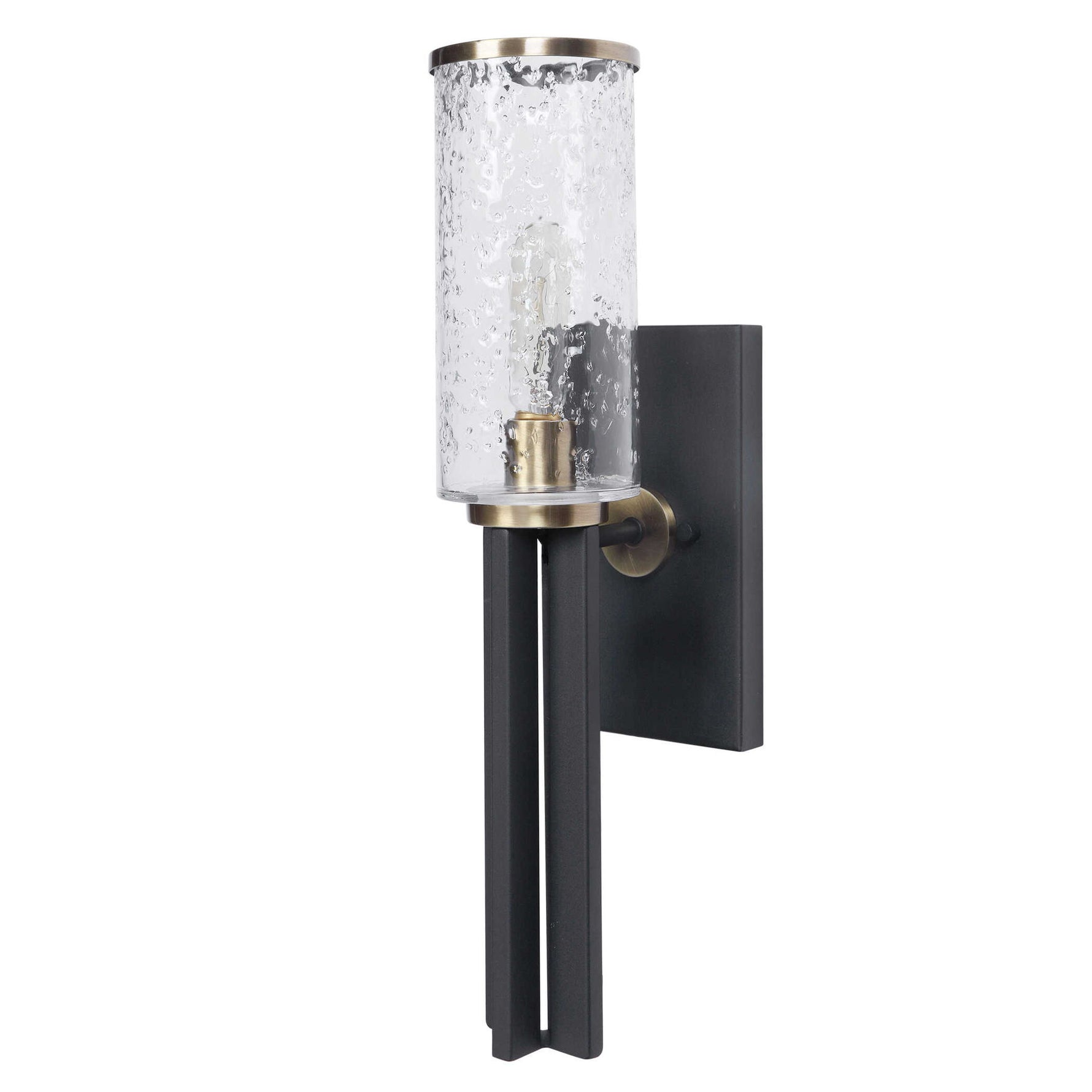 Refined Industrial With Clean Lines On Our 1 Lt. Wall Sconce Features A Sanded Black Finish On The I-beam Style Frame With Refined Antique Brass Accents And Clear Meteor Shower Glass Shades. 1-60 Watt Max, Edison Socket. Bulbs Not Included.