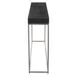 - Sleek And Contemporary, This Console Table Features A Black Concrete Look Atop A Brushed Nickel Stainless Steel Base.