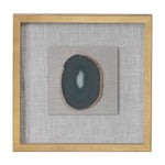 - A Pine Wood Shadow Box Featuring A Hand Applied Gold Leaf Finish Showcases A Striking Emerald Green Agate Stone With White Veining, Accented With Hand Painted Gold Edging. Mounted On An Off White Linen Backing.