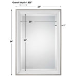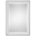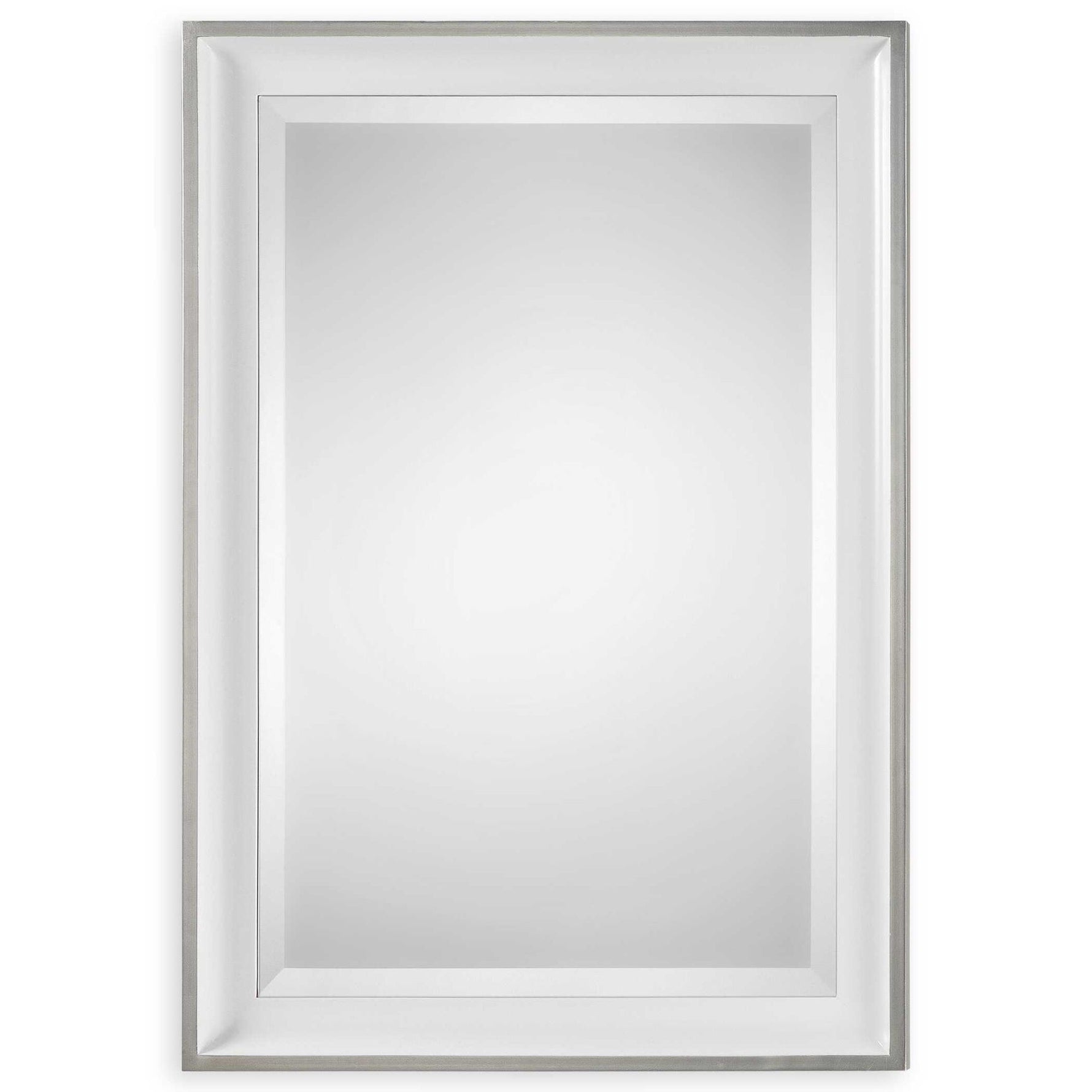 Sloped Profile Frame Finished In Gloss White, Accented With A Silver Leaf Outer Edge. Mirror Is Beveled And May Be Hung Horizontal Or Vertical.