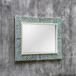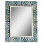 This Unique Design Takes A Whimsical Approach By Adorning A Solid Wood Frame With Fiber Glass Mermaid Scales, Hand Painted In Shades Of Tropical Blues, Accented With A Heavy White Wash. Mirror Is Beveled And May Be Hung Horizontal Or Vertical.