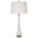 • This Table Lamp Adds An Air Of Elegance And Sophistication To Any Space. The Body Of The Lamp Is Crafted From Ivory Man-made Stone That Accurately Replicates The Look Of Thasos Marble And Is Accented By Iron Details Finished In Brushed Brass.