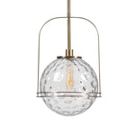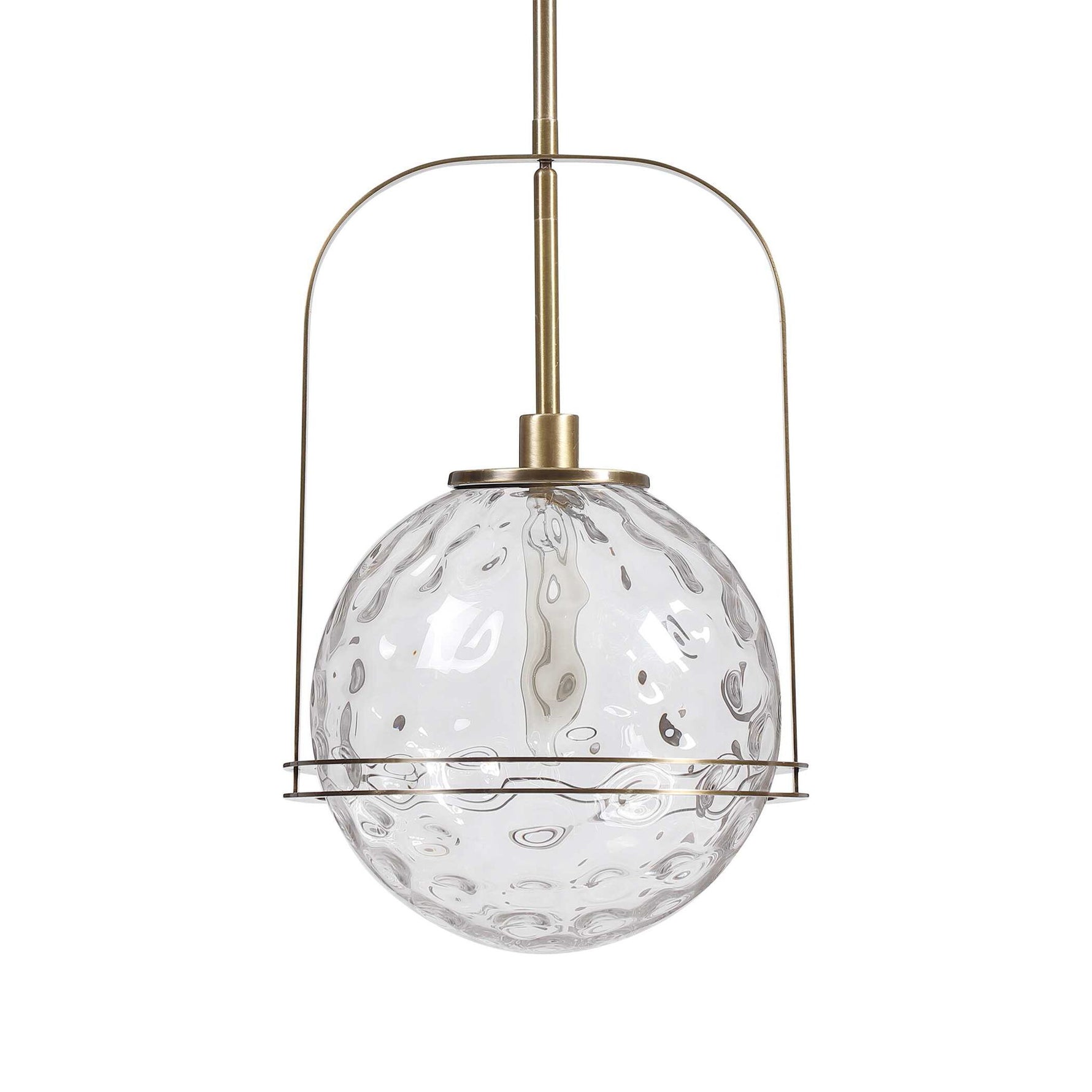 Soft Contemporary Lines Anchor This Oversized Floating Sphere Of Clear Watered Glass Enhanced With Rich Antique Brass Accents Giving A Nod To Modern Design Lines Also. 1-40 Watt Max Edison Socket. Bulb Not Included. Supplied With 15' Wire, 3-12" Stems And 1-6" Stem For Adjustable Installation.