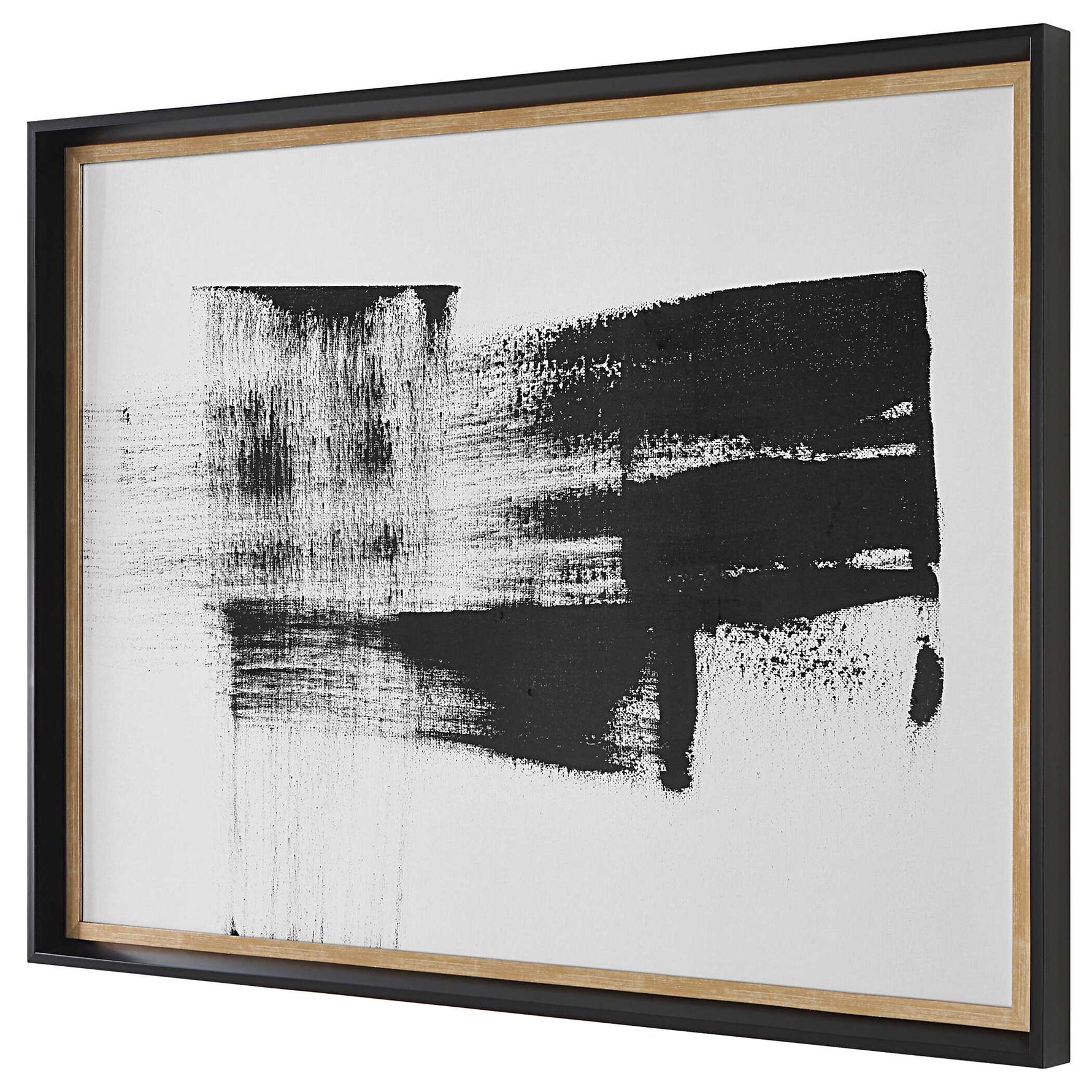- Black Frame With Gold Inner Fillet, Under Glass, Black And White Abstract Print