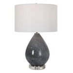 - This Ceramic Table Lamp Displays A Unique Black And White Speckled Glaze With Polished Nickel Plated Accents And A Thick Crystal Foot.