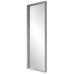 - This Oversized Mirror Shows Off Simple Lines And A Beautiful Textured Silver Finish. Can Be Displayed Leaning Against A Wall Or Hung Horizontal Or Vertical.
