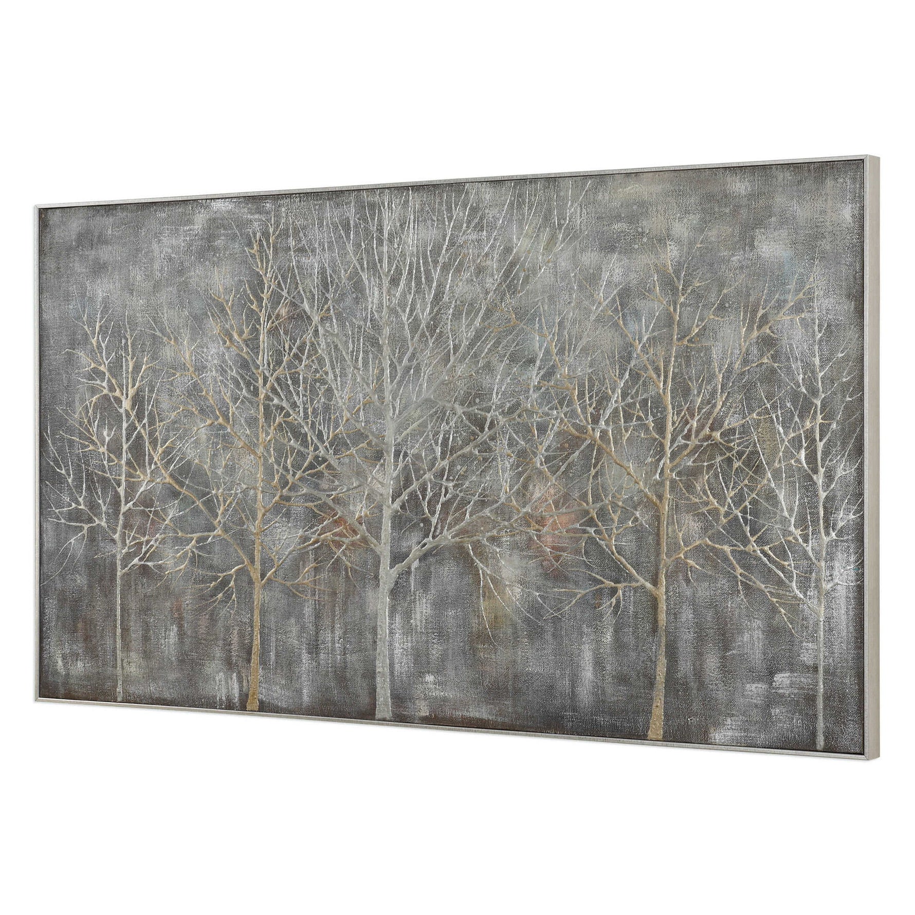 Contemporary In Design, This Hand Painted Landscape On Canvas Features Heavily Textured Accents, Which Create A Raised, Dimensional Effect. Gray, Gold, And Silver Hues Form A Versatile, Neutral Color Palette. Each Canvas Is Stretched And Attached To Wooden Stretchers And Surrounded By A Petite, Champagne Silver Leaf Gallery Frame. Due To The Handcrafted Nature Of This Artwork, Each Piece May Have Subtle Differences.