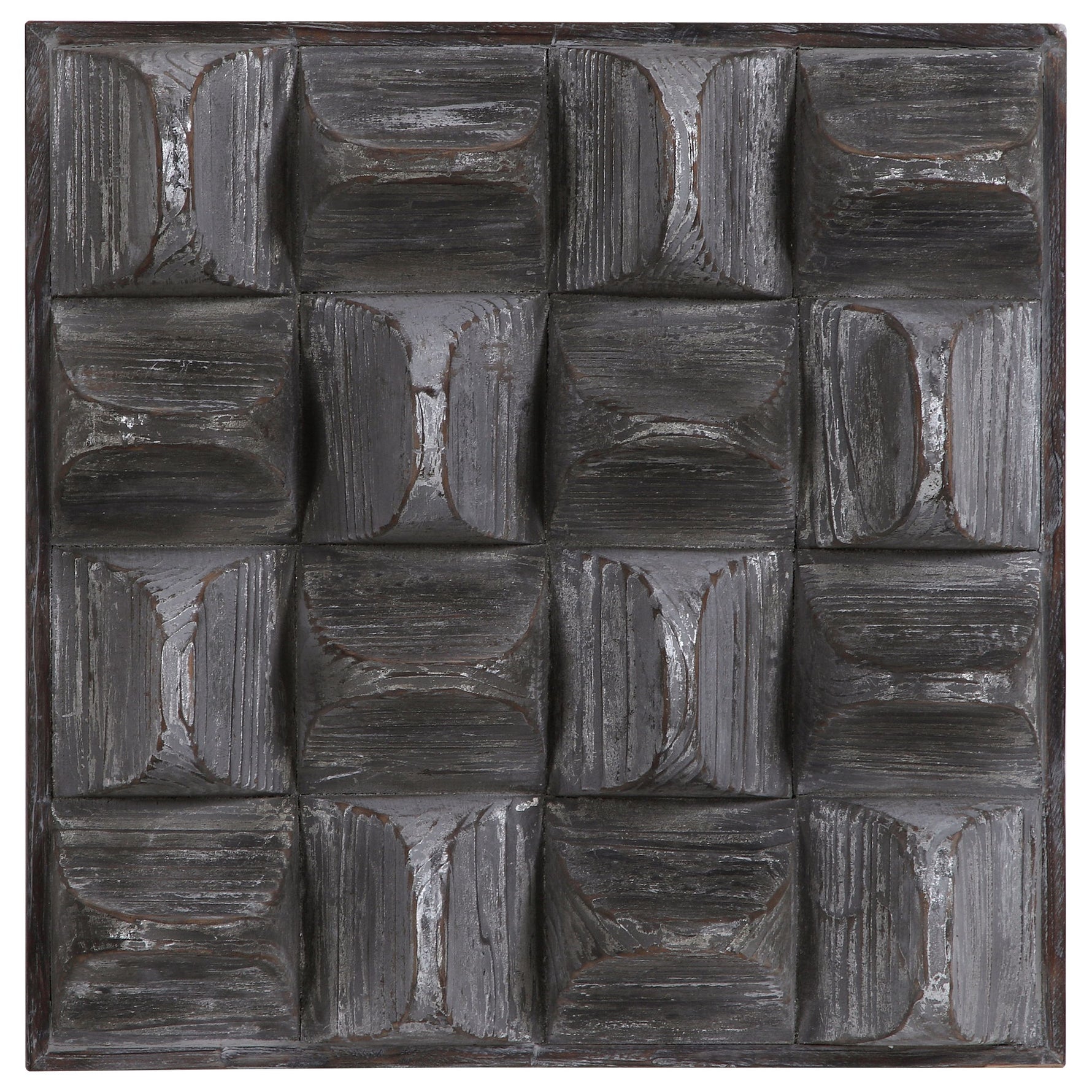 • A Contemporary Take On Rustic Decor, This Wood Wall Panel Features 3-dimensional Scooped Fir Wood Blocks With A Distressed, Aged Gray Wash And Silver Highlights.