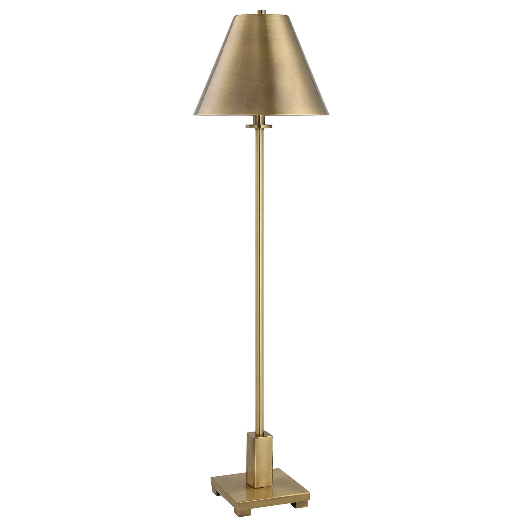The Pilot Buffet Lamp Displays A Slender Metal Construction Finished In Plated Brushed Brass With A Coordinating Metal Empire Shade.