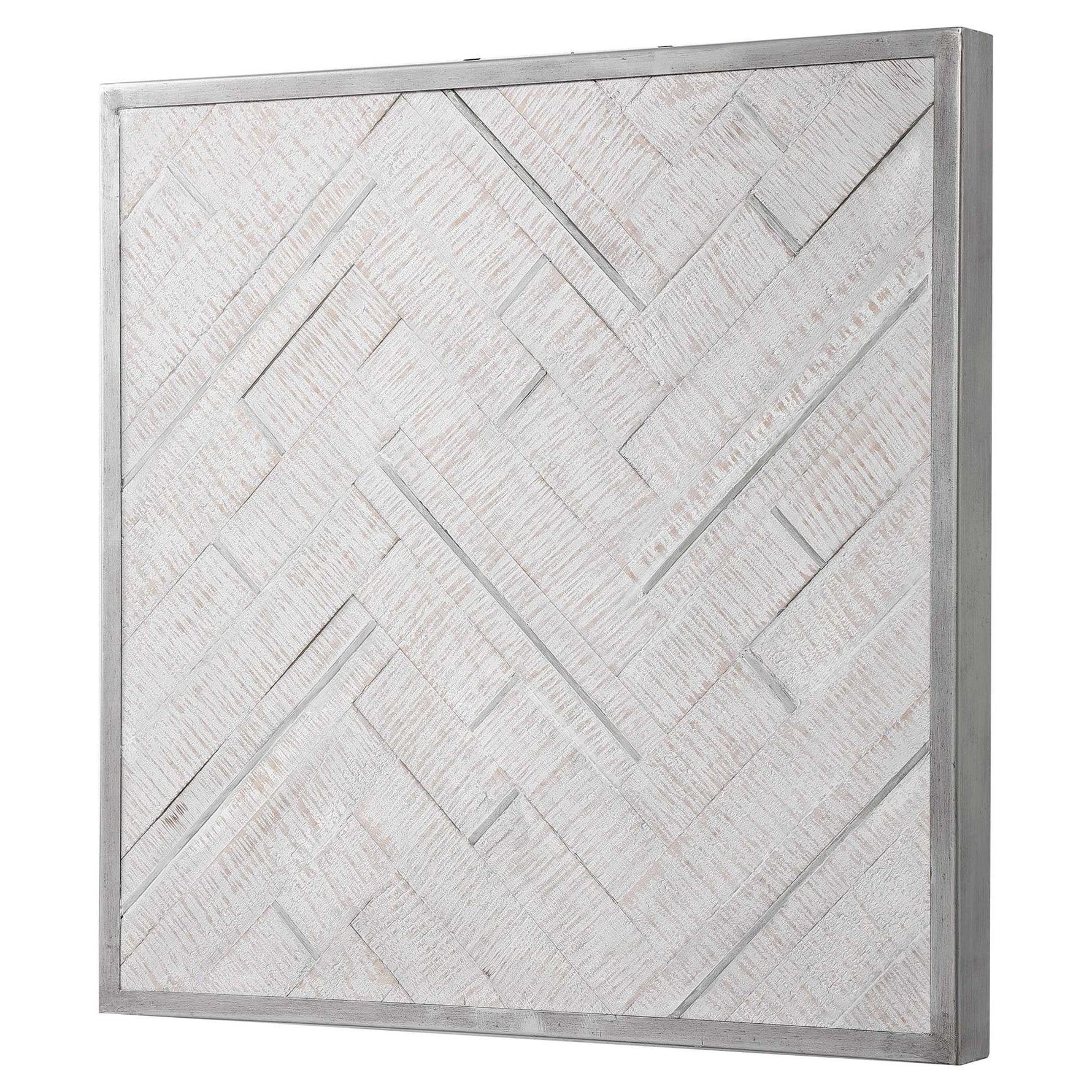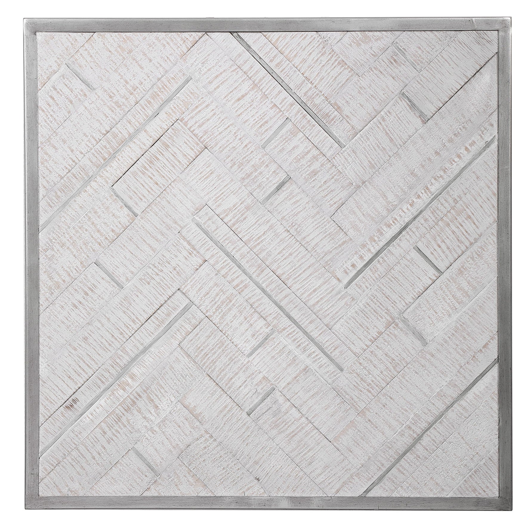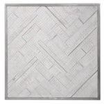 • This Wood Wall Panel Personifies Modern Coastal Style With Whitewashed Pine Wood In A Classic Herringbone Pattern Accented By Sleek Silver Bar Inserts. Each Piece Is Paired With A Distressed Brushed Silver Frame And May Be Hung Horizontal Or Vertical.