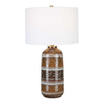 - Natural Browns, Taupe, White, And Charcoal Tones Work Together To Create A Unique Artisan-crafted Look For This Table Lamp. The Ceramic Base Is Accented By Antique Brass Finished Details And A Subtle Ribbed Texture. Glaze Colors And Designs May Vary Slightly Adding To The Authenticity And Character Of The Piece.