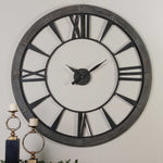 Oversized Wall Clock Features A Dark, Rustic Bronze Finish Accented With A Rust Gray Frame. Quartz Movement Ensures Accurate Timekeeping. Requires One "AA" Battery.