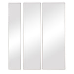 • This Set Of Three Mirrors Showcase Simple, Clean Lines With Gold Leaf Finished Metal Profile Frames. Each Mirror May Be Hung Horizontal Or Vertical, Allowing For Multiple Modern Display Options. Sizes: S-8"x47", M-12"x47", L-16"x47"