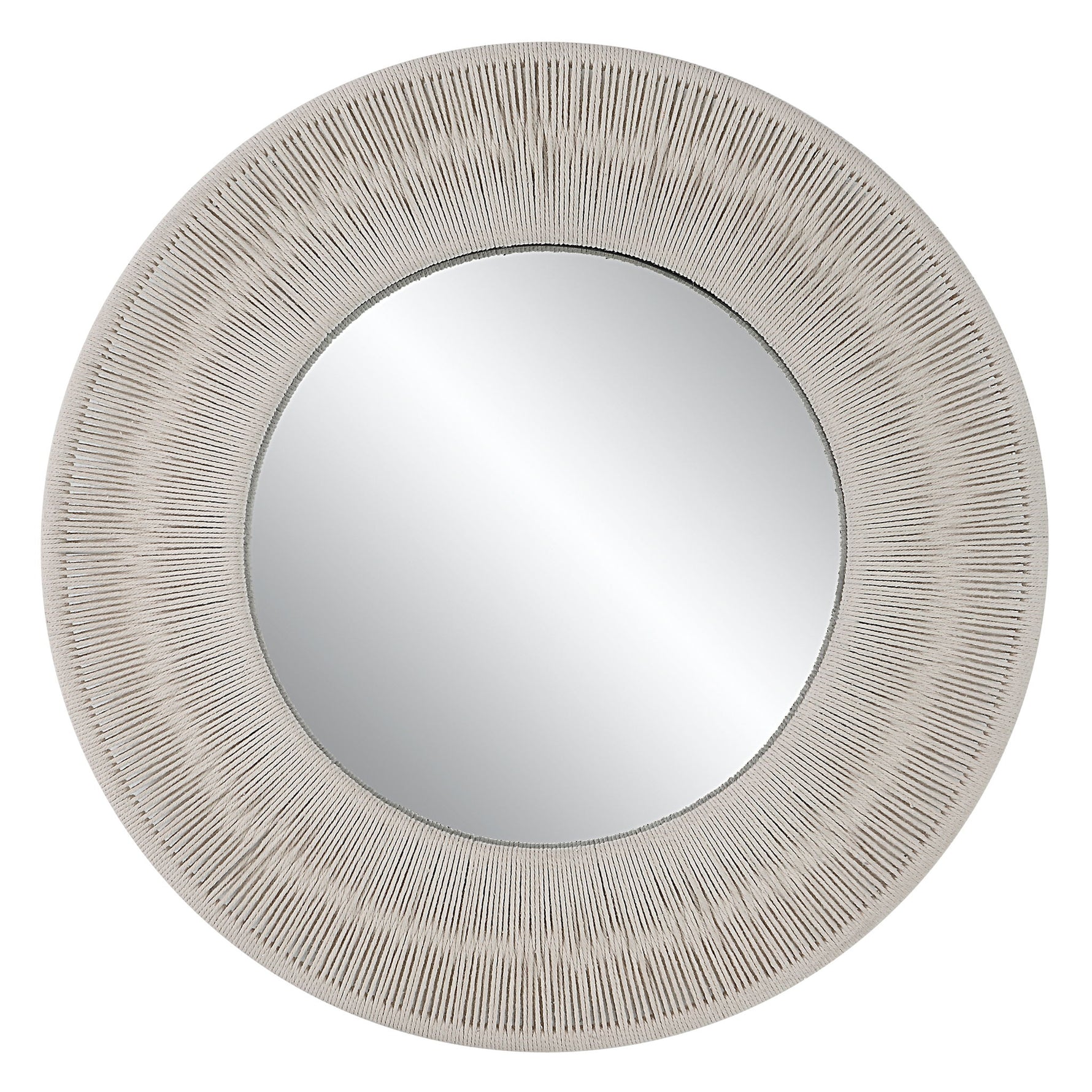 - With Combined Natural Texture And Materials, This Round Mirror Pays Homage To Its Coastal Inspiration. Crisp White Rope Is Stretched Over A Solid Iron Frame To Create A Casual And Versatile Design.