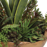 • Dense And Lush Mix Of Succulent Plants Including Aloe, Jade, Bromeliad, String Of Pearls, And Others In A Hand Carved, Natural Teak Bowl.