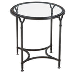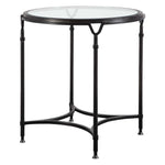 Featuring Equestrian Inspired Lines, This Hand Forged Steel Side Table Is Finished In Aged Black, With A Clear Tempered Glass Top.