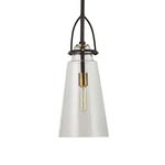 This Timeless 1 Lt. Mini Pendant Is Finished In Black With Antique Brass Accents Featuring Clear Glass And A Touch Of Rustic & Industrial Design. 1-60 Watt Max, Edison Socket. Bulb Not Included. Supplied With 15' Wire, And 3-12" Stems & 1-6" Stem For Adjustable Installation.