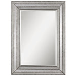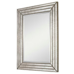This Mirror Features A Frame Made Of Antiqued Mirror Inlays With Burnished Silver Details. Center Mirror Features A Generous 1 1/4" Bevel. May Be Hung Horizontal Or Vertical.