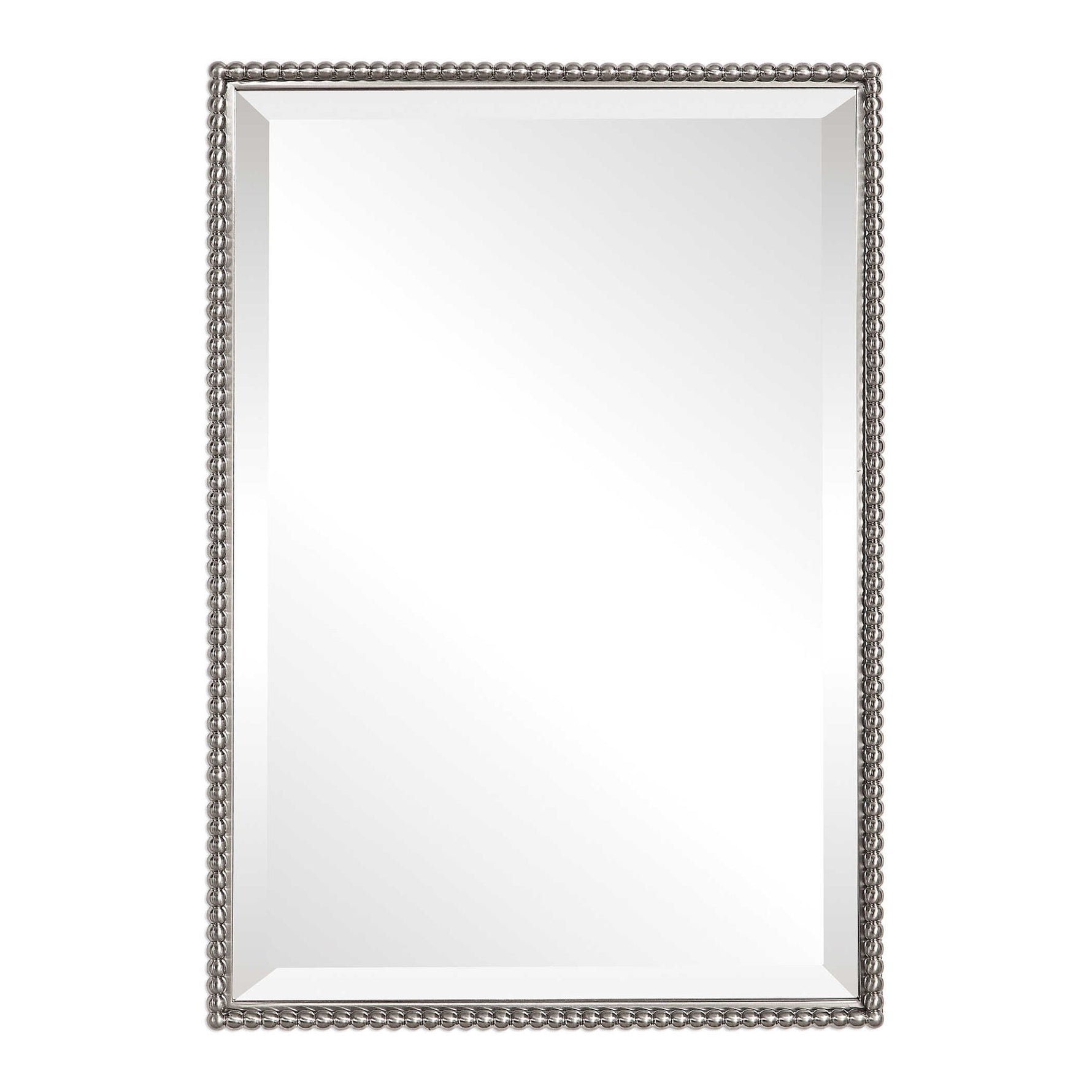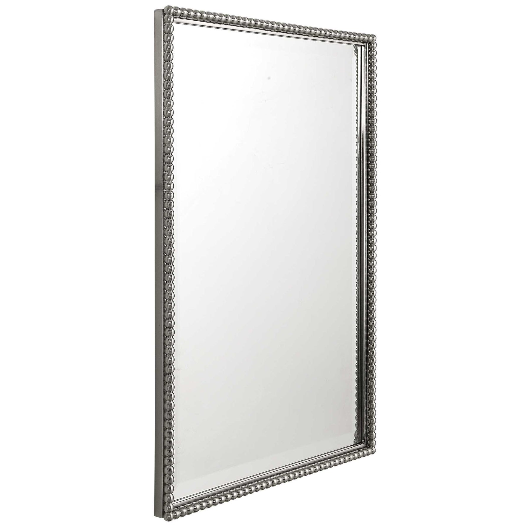 Brushed Nickel, Metal Frame Features A Decorative Beading Design. Mirror Features A Generous 1 1/4" Bevel And May Be Hung Horizontal Or Vertical.