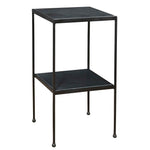 • Constructed From Solid Iron, This Accent Table Is Finished In A Smooth Matte Black With Double Black Honed Marble Shelves.