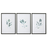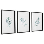 A Nod To Modern Farmhouse Style, This Set Of Artwork Showcases Individual Sage Branches Printed In A Watercolor Style. Cool Shades Of Green And Gray Blue Are Complemented By Elegant Double White Matting And A Petite Matte Black Frame, Under Glass. Artwork By Emma Scarvey.