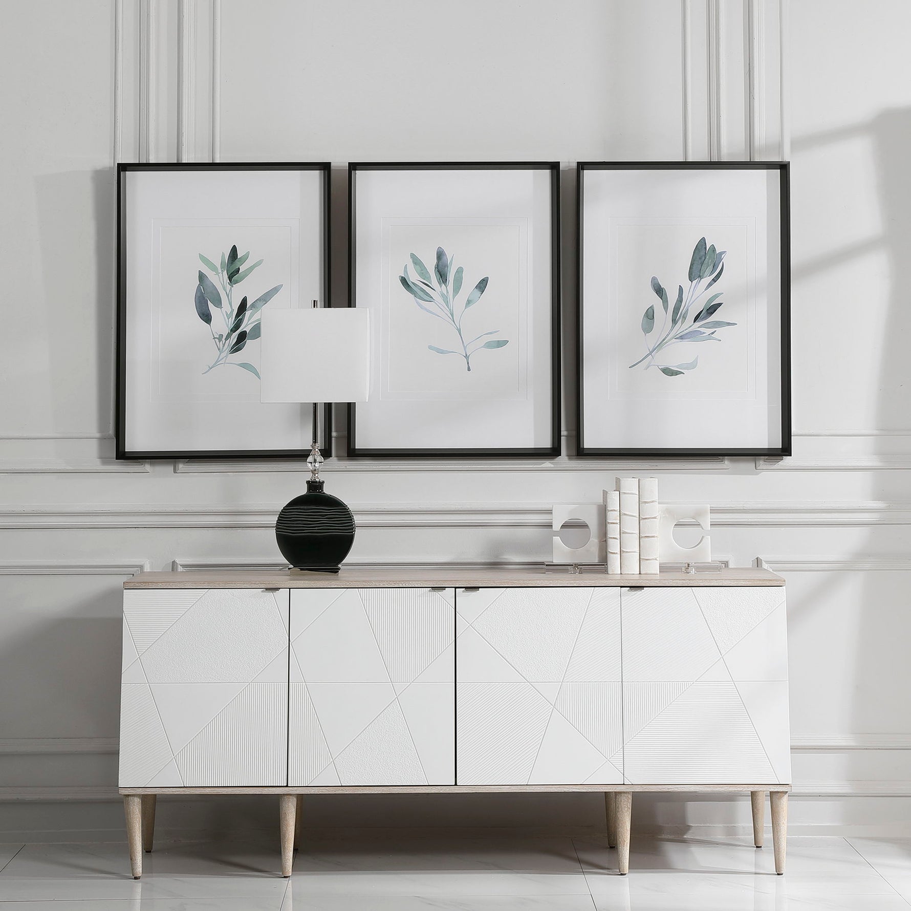 Simple Sage - Watercolor Prints (Set of 3) - White