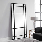 - This Oversized Mirror Features A Heavy Iron Frame With Deep Channels Inspired By Old Warehouse Windows, Finished In Satin Black. May Be Hung Horizontal Or Vertical.