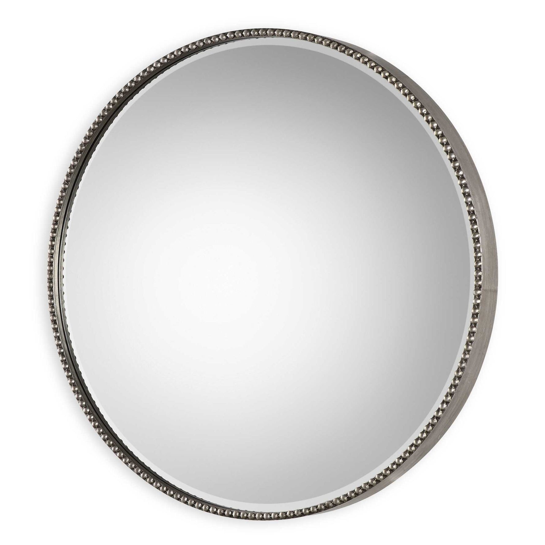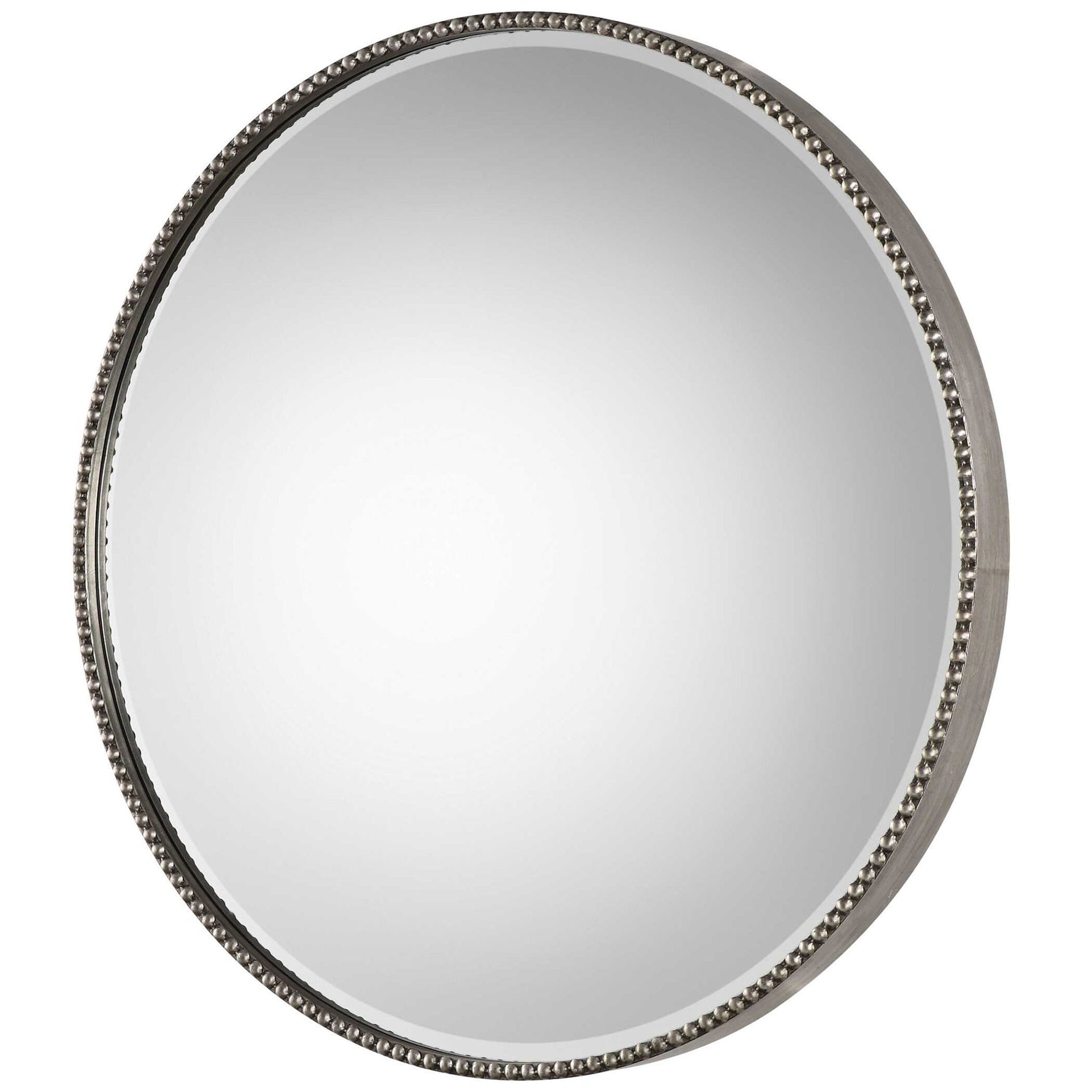 Stefania - Beaded Round Mirror - Pearl Silver